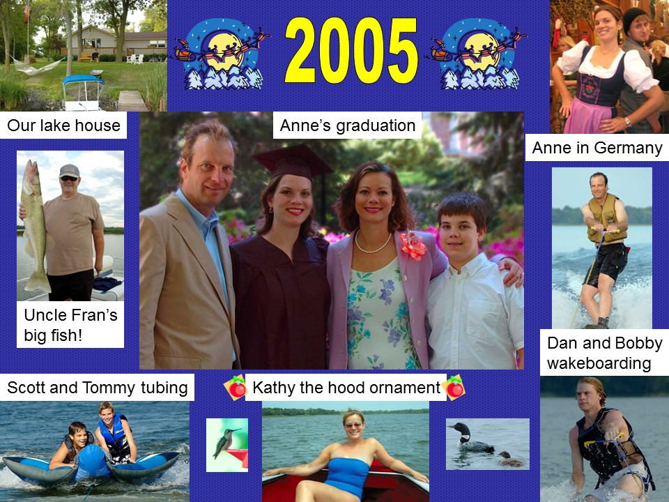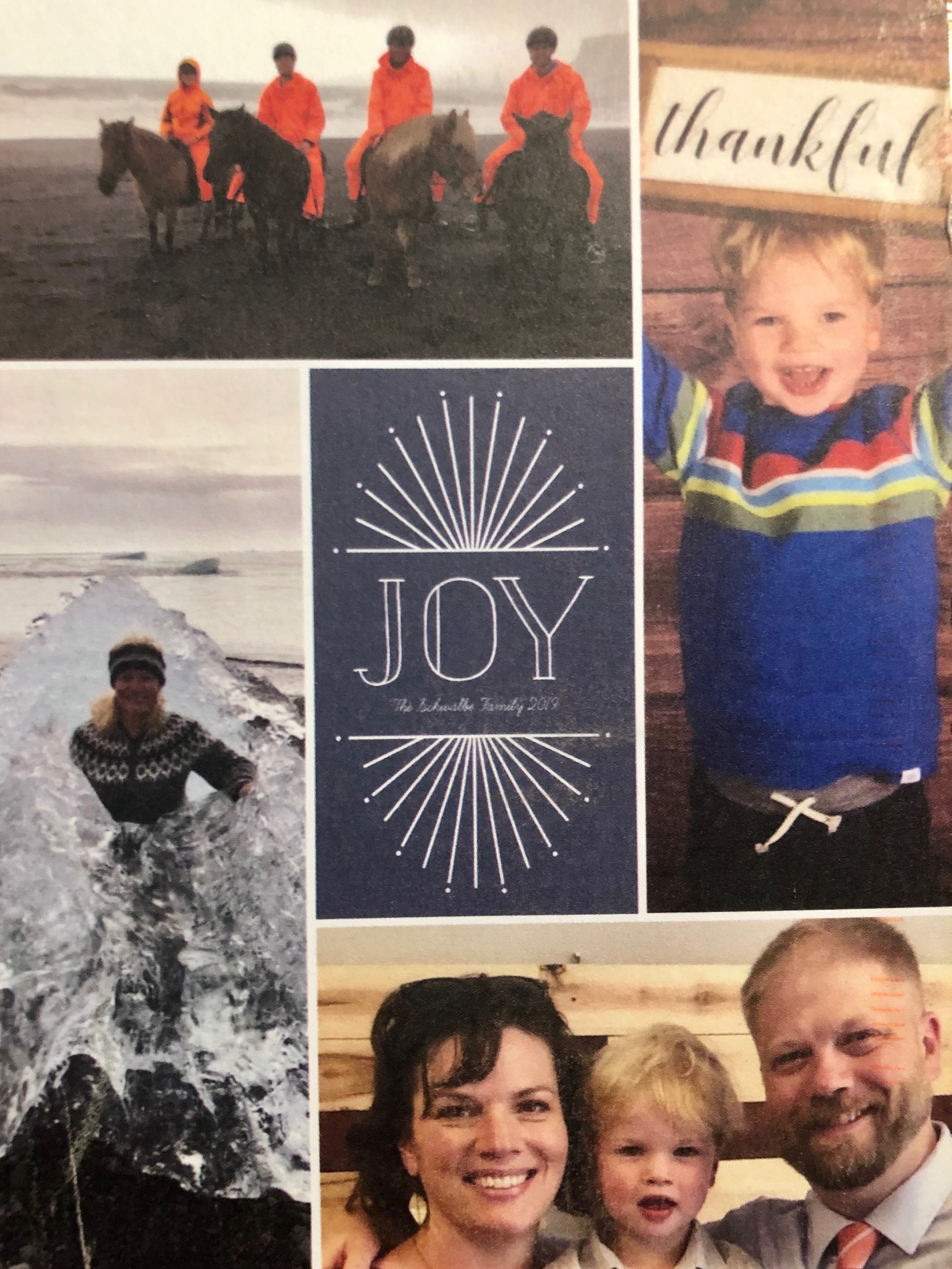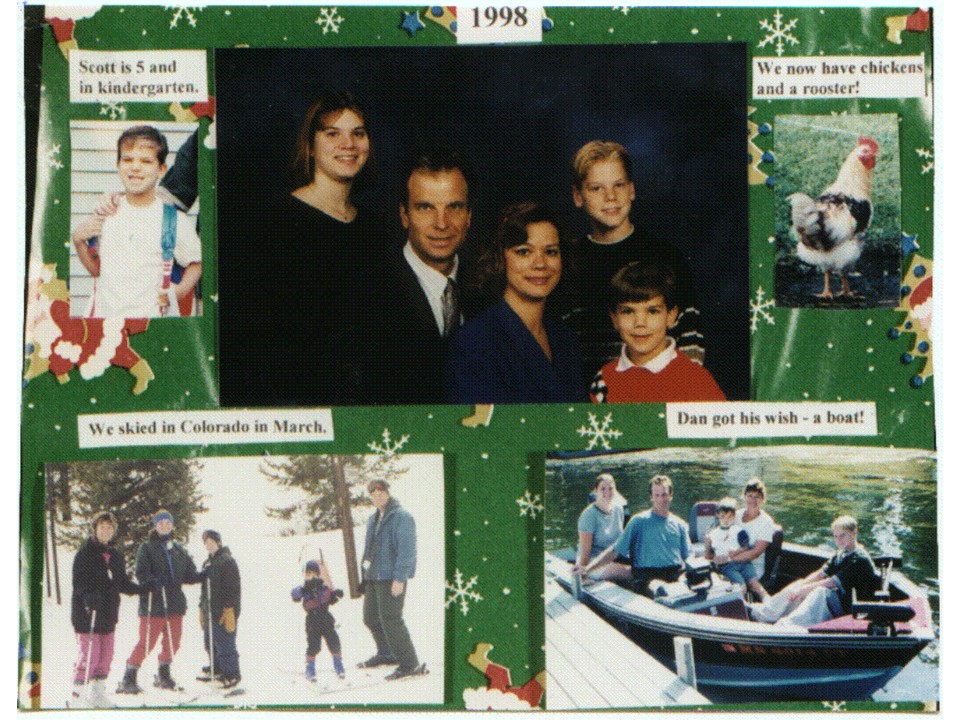 I met my husband, Dan, when we were sophomores at the University of Notre Dame (1978). We have three grown children, one daughter and two sons, and one grandson. Below are some of our Christmas photo collages. I started making them in 1998 by cutting and pasting physical pictures onto wrapping paper. Much easier to do online now!
